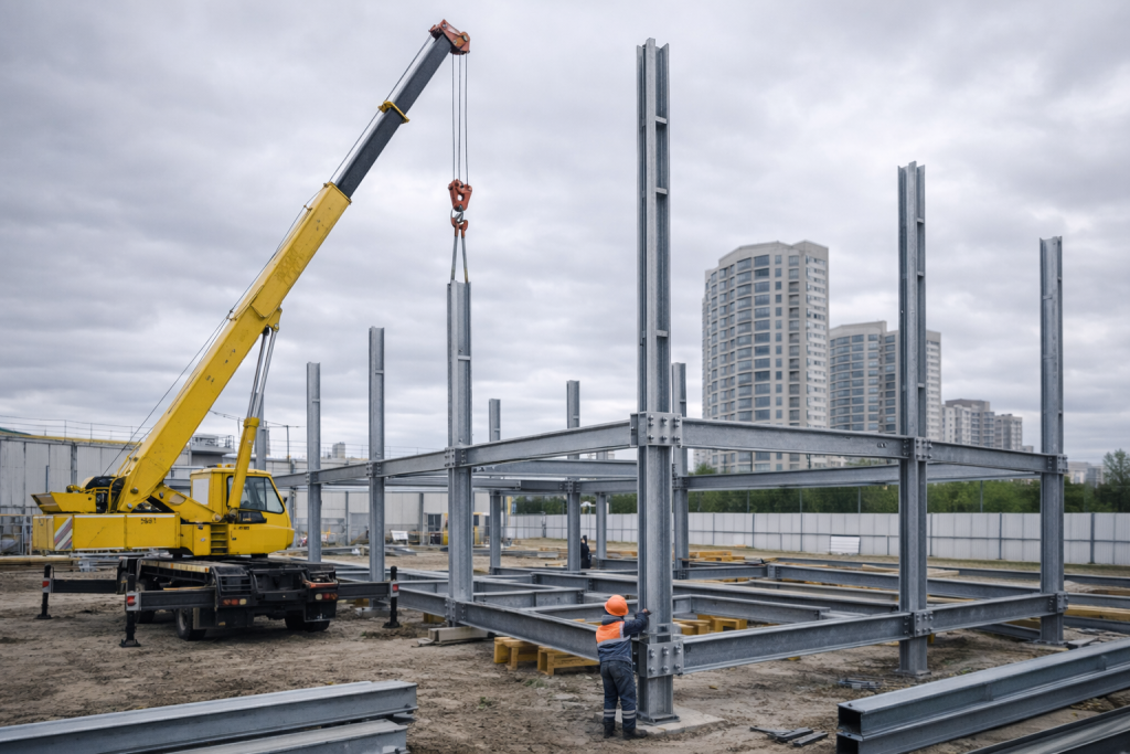 Для организации работ также нужны условия площадки: подъезд и место для крана/манипулятора, зона складирования металлоконструкций, возможность поэтапной разгрузки «по захваткам», доступ к электроэнергии и освещению (если требуется), а также согласованный график и очередность монтажа. Если параллельно идут другие работы (фундамент, ограждающие, инженерия), важно заранее зафиксировать точки пересечения и ограничения, чтобы не возникло коллизий по проёмам, трассам и примыканиям.