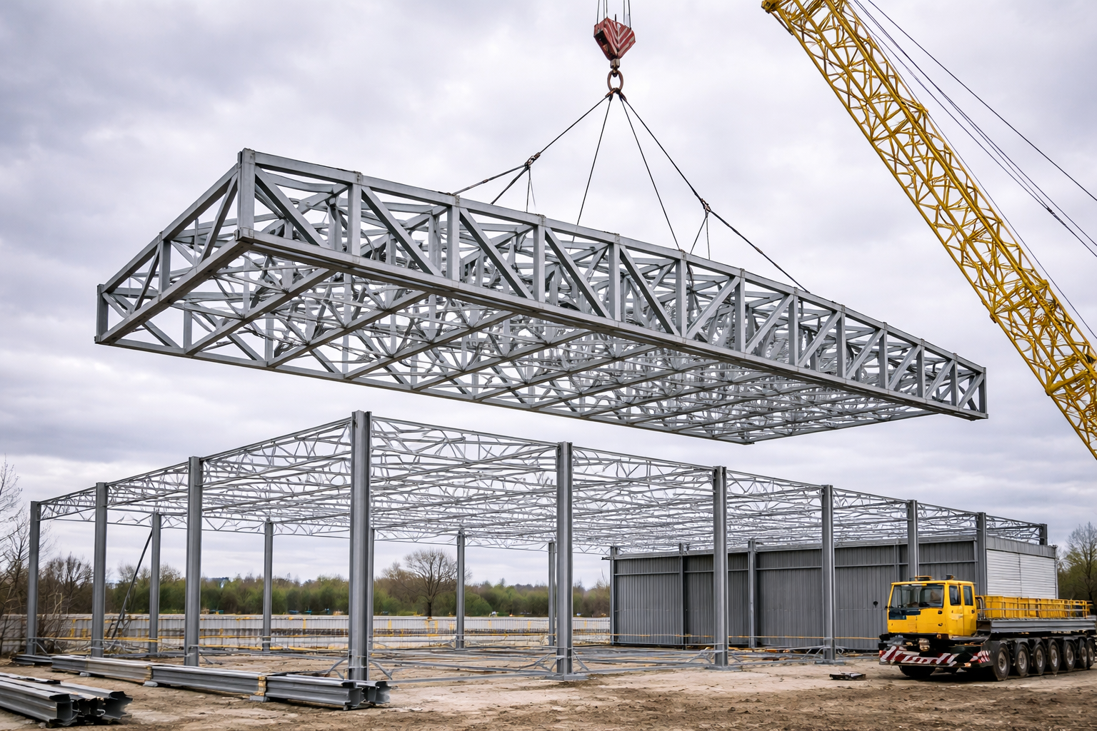 Объём металла, сложность узлов, готовность основания, погодные условия, логистика и доступность техники. Чем точнее комплектность и маркировка, тем быстрее сборка.