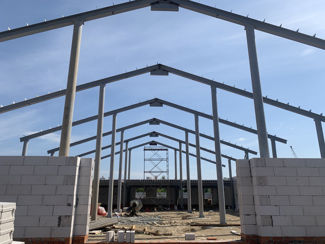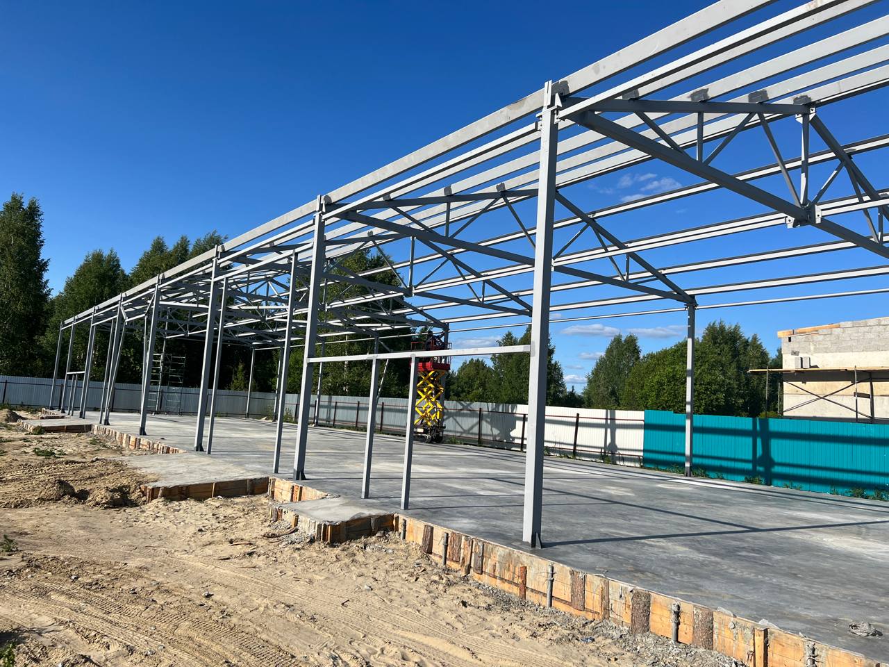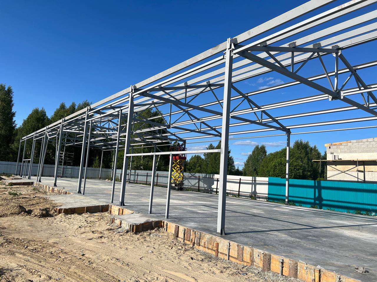 Компания «Прайд» реализует строительство под ключ по схеме: проектирование (при необходимости) → изготовление металлоконструкций → монтаж каркаса → монтаж ограждающих конструкций и сэндвич-панелей. Такой подход позволяет заранее увязать узлы каркаса с узлами ограждения, обеспечить правильные отметки и шаги прогонов, а также сохранить единый контроль качества на протяжении всего процесса.