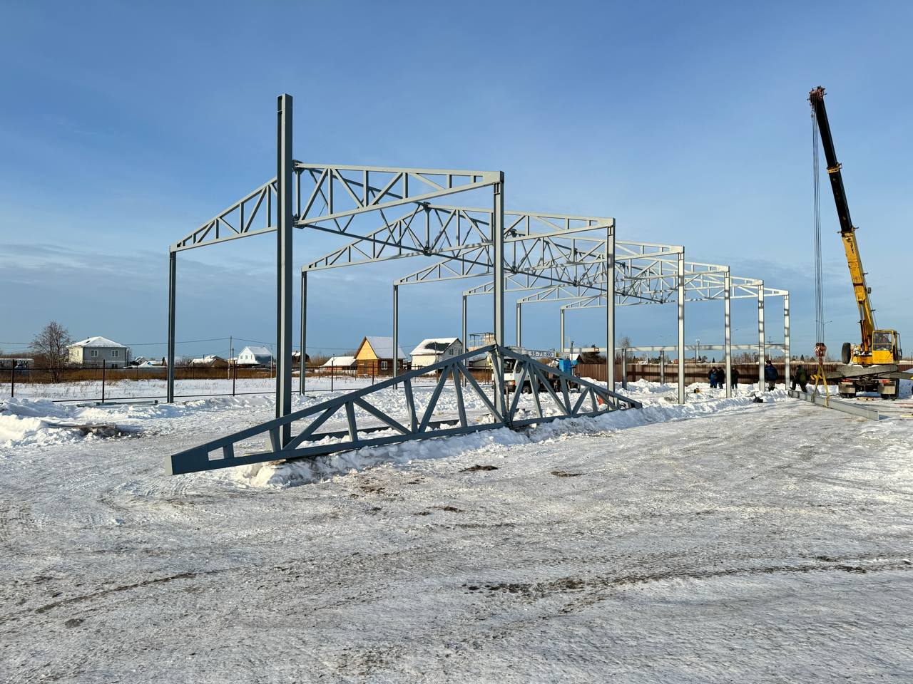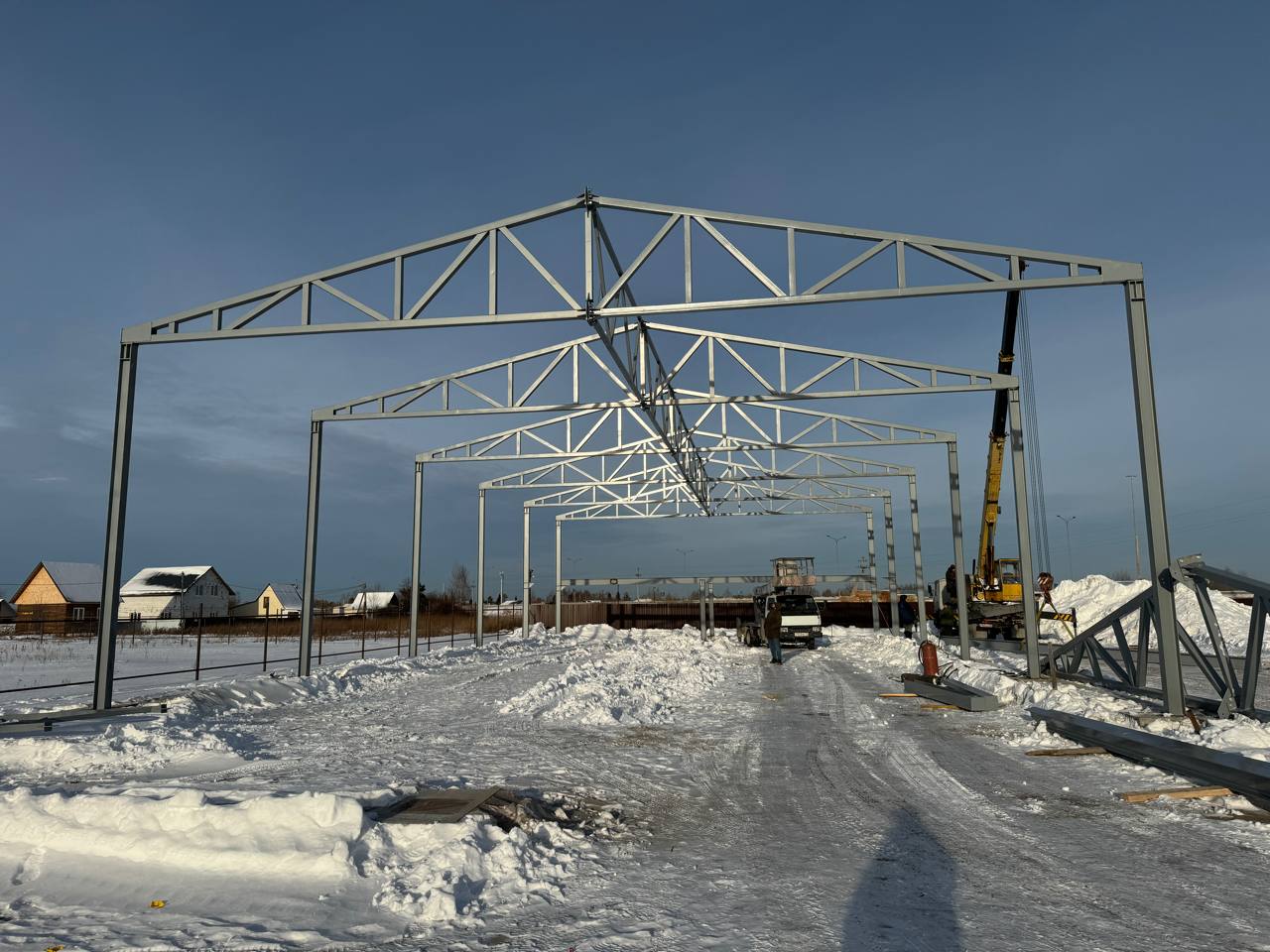 Вторая проблема — потеря геометрии каркаса по ходу сборки. Небольшое отклонение в начале превращается в сложности на панелях и проёмах: «волна» по фасаду, щели, ворота не встают по уровню. Мы держим геометрию под контролем на каждом этапе: вертикальность колонн, диагонали, проектные положения, связевую жёсткость и поэтапную фиксацию результата.