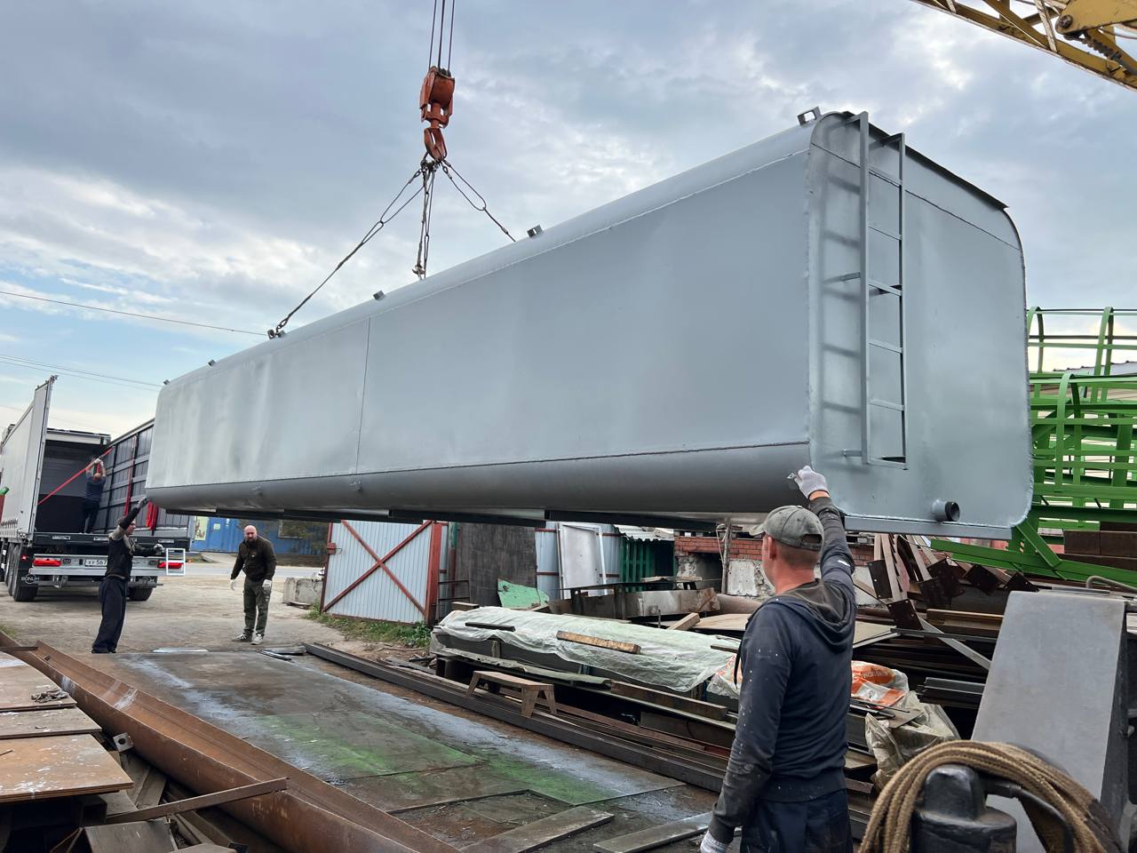 Да. По запросу мы изготавливаем площадки обслуживания, лестницы и ограждения как часть инженерного решения вокруг ёмкости.